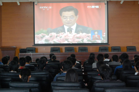 空港校区师生认真收看党的十八大开幕式