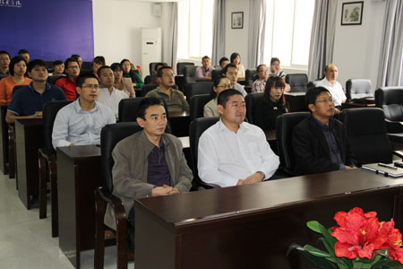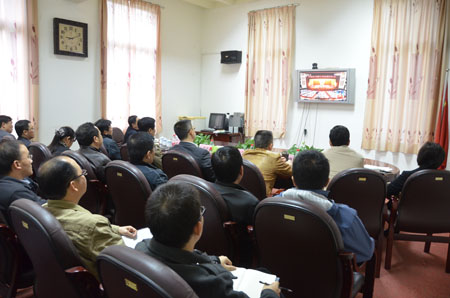 学校校长张学洪(左四),党委副书记王赣华(右四),副校长肖岳峰(左三)、陈学军(右三)、吴志强(左二)、周国清(右二)、陈贵英(左一),正厅级调研员张鹏(右一)等在校领导和党委中心学习组成员、机关职能部门党员代表们认真收看党的十八大开幕式