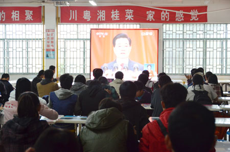 雁山校区师生在1号食堂认真收看党的十八大开幕式