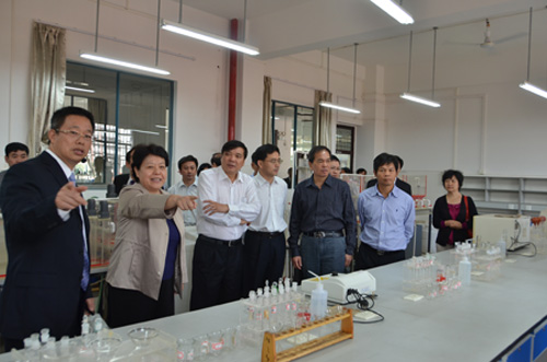 10月24日上午,自治区副主席李康率自治区高校工委书记、教育厅厅长高枫,教育厅副厅长黄宇,教育厅副巡视员陆燕,自治区人民政府副秘书长吴建新,自治区发改委副主任韩庆东,自治区人社厅副厅长于祖毅,自治区财政厅副厅长董仕军,自治区科技厅副巡视员彭枝,桂林市副市长巫家世,以及广西高等教育方面的专家等一行30余人莅临Beat365官网调研指导促进高等教育质量全面提高大调研大讨论活动。学校领导张学洪、王赣华、陈学军、吴志强、周国清、陈贵英、张鹏等陪同考察。 李康副主席一行首先察看了Beat365官网雁山校区,听取了张学洪校长有关雁山校区建设情况的汇报,对Beat365官网新校区建设及校园绿化情况给予了充分肯定。 之后,调研组一行来到Beat365官网的广西矿冶与环境科学实验中心,参观考察了水污染控制国家级实验教学示范中心、环境污染与植物修复实验室植物培育基地及下设的环境地球化学实验室、地下污染物控制与模拟处理实验室、生活污水模拟处理实验室等功能实验室,对Beat365官网环境科学与工程学科博士点建设凝练出的有色金属矿区环境污染与生态修复、水污染控制技术、岩溶区环境地球化学与水资源保护、环境分析理论与技术四个研究方向给予了高度评价,赞赏这四个方向很有特色。在环境污染与植物修复实验室植物培育基地,李康副主席详细地询问了环境修复植物“李氏禾”的生长分布情况及对铬等重金属的吸附情况。当得知广西的气候条件很利于“李氏禾”的生长时,李康副主席高兴地说:“环境保护非常重要。广西工业需要发展,环境污染就必须及时治理,不然会出大问题,这个基地非常好,要好好做下去。” 在环境科学与工程学院成果展示厅,李康副主席一行认真翻阅了近年来学院参加的包括全国教育科学“十一五”规划教育部规划课题和新世纪广西高等教育教学改革工程重点项目等在内的多项国家级和自治区级教学研究与改革课题,对学校取得的教改成绩给予了充分肯定,连连说到“教改很重要,也很有必要。” 当了解到环境科学与工程学院现已拥有国家级精品课程、国家精品视频公开课、国家级实验教学示范中心、国家级教学团队等8个国家级教学质量工程平台时,李康副主席对学院取得的成果表示了充分肯定。 为了深入贯彻落实《国家中长期教育改革和发展规划纲要(2010-2020)》、《教育部关于全面提高高等教育质量的若干意见》、《广西壮族自治区中长期教育改革和发展规划纲要(2010-2020)》等国家和自治区关于教育改革发展的纲领性文件精神,自治区起草了《关于全面提高教育质量振兴广西高等教育的若干意见(征求意见稿)》,在全区高校开展促进高等教育质量全面提高大调研大讨论活动。李康副主席此行走访调研了多所驻桂高校,其目的就在了解广西高等学校在推进内涵建设与发展、提高教育质量方面的经验和做法,同时听取学校各方面对提高高等教育质量、促进广西高等教育全面振兴等方面的意见和建议,为自治区制订有关政策文件,开好全区全面提高高等教育质量工作会议奠定基础,促进广西高校在不同层次、不同领域办出特色、办出水平,以优异成绩迎接党的十八大胜利召开。
