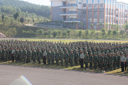 9月16日上午,高职学院在空港校区足球场隆重举行2012级新生军训开训动员大会。副校长肖岳峰、刘宝臣,崇左军分区上尉刘燕清,校党委组织部副部长李辉,学院党委常务副书记梁冬松,副院长蒋德岗、梁锦叶,崇左军分区中尉吴冬冬及学院各部门负责人出席动员大会并在主席台就座。学院2012级全体新生参加。动员大会由副院长梁锦叶主持。 动员大会在雄壮的国歌声中拉开帷幕。副校长刘宝臣代表学校向承担这次军训任务的崇左军分区表示热烈的欢迎和诚挚的谢意。刘副校长在动员讲话中指出,在校大学生参加军训是法律规定在校期间必须履行和完成的一项光荣任务,是学校教育的一种特殊形式,对于全面推进素质教育、促进大学生健康成长具有十分重要的意义。他希望2012级新生积极树立忧患意识,增强国防观念,树立正确的军训态度,严格要求,刻苦训练,争取以优异的军训成绩接受各级领导的检阅。 崇左军分区上尉刘燕清代表军训教官对参训学生提出要求,希望他们服从命令,增强组织性、纪律性;认真学习、刻苦训练,以军人的标准要求自己,努力完成军训任务。2012级新生代表于海洋在动员大会上作了发言。 该院党委常务副书记梁冬松任命2012级新生军训团干部。最后,动员大会在嘹亮的《军歌》声中圆满结束。