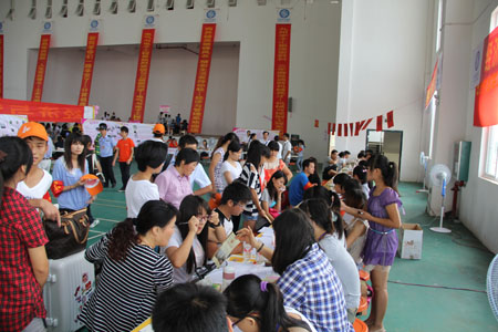 丹桂飘香含笑意,空港校区喜迎新。9月11日,空港校区横幅高挂,彩旗飘扬,处处洋溢着喜庆、和谐的气氛。八方学子齐聚空港,Beat365官网高职学院全面拉开了2012年新生报到工作的帷幕。副校长刘宝臣及学院领导亲临迎新现场指导工作,并给参加迎新工作的师生带去亲切的慰问。 刘宝臣副校长先后检查了各系迎新接待点、入学报到处、收费处以及绿色通道办理点的布置工作,详细了解各系新生报到的具体情况,并要求各部门一定要全力以赴努力做好迎新工作,让新生切实感受到空港校区师生的良好风采,确保迎新工作平安、顺利进行,努力实现“学生满意、家长满意、社会满意”的目标。 为做好2012年迎新工作,学校及该院领导高度重视,精心准备,专门成立迎新工作领导小组并召开迎新工作协调会议,对迎新工作各个环节进行具体分工,落实责任到人,确保各部门齐心协力、共同合作,保证迎新工作畅通无阻。 本次迎新工作坚持做到以人为本,充分体现一切为了学生的工作理念,努力做好新生及家长接待工作,做好一站式服务工作,为新生从报到注册到入住宿舍提供全面、便捷的服务,努力做到让家长放心、省心、安心。学院分别在南宁市和扶绥县的火车站及各个汽车站设立迎新接待点,安排校车接送新生及家长。在校内接待点,学院以系部为单位,设立多个迎新接待分点,分别设有宣讲咨询点、家长服务点等,安排带队教师和高年级学生干部引导、帮助新生办理入学各种手续,切实为新生提供便利。 学院专门设置绿色通道办理点,通过宣传海报、教师现场讲解等方式大力宣传各项资助政策,确保2012级家庭经济困难新生顺利入学、安心学习、正常生活,努力实现应助尽助的目标。此外,学院还在各系迎新点摆放宣传展板,介绍各专业基本情况、教师风采及学生获奖等情况,方便新生及家长了解专业特点,帮助新生更好地融入新学校、新生活。