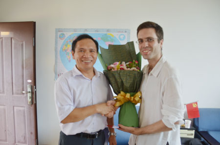 周国清副校长(左)慰问国际教育学院艾伦老师