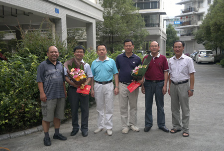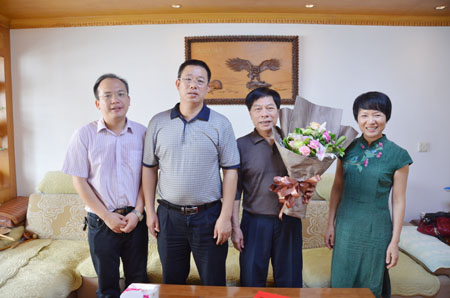 肖岳峰副校长(左三)慰问管理学院蒙永亨教授、旅游学院段文军副教授