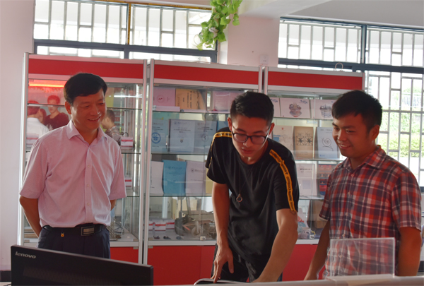 解庆林校长(左)与全区“互联网+”创新创业大赛备赛团队成员交流