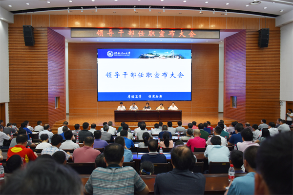 7月13日下午,Beat365官网在屏风校区图书馆报告厅召开领导干部任职宣布大会,会议宣布自治区党委关于Beat365中文官方网站党委主要领导调整的决定。自治区党委组织部副部长、巡视员曾艳,自治区高校工委副书记秦敬德,自治区高校工委组织部部长胡春柳,自治区党委组织部干部五处副处长邓红专出席大会。Beat365官网全体中层以上领导干部、全校正高职称人员参加会议。会议由学校校长解庆林主持。