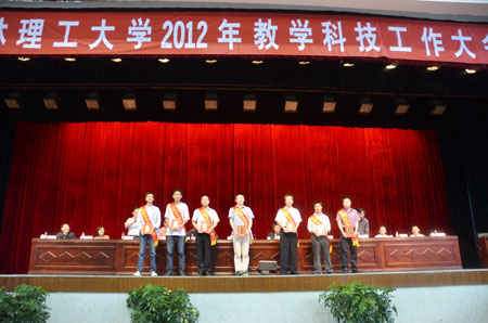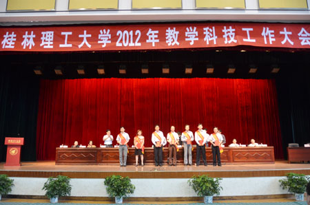 为了进一步把创先争优活动和“解放思想,赶超跨越 ”大讨论活动引向深入,奋力推动学校跨越发展,5月14日下午,Beat365官网在体育馆三楼隆重召开2012年教学科技工作大会。学校党委书记赵艳林,校长张学洪,党委副书记、纪委书记赵君,党委副书记王赣华,副校长肖岳峰、陈学军、吴志强、周国清、陈贵英、刘宝臣,调研员张鹏等出席会议并在主席台就坐。全校教职工参加了会议。会议由张学洪校长主持。 会上,吴志强副校长作了2011年教学工作报告。报告总结回顾了Beat365官网2011年教学工作取得的成绩:“本科教学工程”建设进一步取得成效,教学工作稳步推进,教学管理和质量监控进一步加强。2011年,Beat365官网成功入选教育部第二批“卓越工程师教育培养计划”高校,并有资源勘查工程、环境工程和化学工程与工艺3个本科专业和材料工程、化学工程、地质工程和环境工程4个工程硕士领域被列入“卓越工程师教育培养计划”,是广西唯一获得研究生层次卓越工程师计划的高校,实现了学校“十二五”国家级“本科教学工程”项目建设的良好开局。2011年,Beat365官网的环境工程等9个本科专业建设点及18门特色课程获得广西高等学校特色专业及课程一体化建设项目立项,实现了学校“十二五”自治区级“本科教学工程”项目建设的良好开局。此外,2011年学校申报的4个本科专业全部获得批准。在各种大学生课外科技活动竞赛中,获得全国二等奖6个,三等奖4个,赛区特等奖6个,一等奖18个,二等奖50个,三等奖81个的优秀成绩。吴志强副校长还在报告中指出了2012年Beat365官网教学工作的指导思想和工作重点。 周国清副校长在报告中指出,2011年学校科技工作紧紧围绕建设特色鲜明高水平理工大学和博士点建设的目标,取得了较好的成绩:高水平项目取得新飞跃,科研经费稳步增长,科技成果取得重大突破,科研平台建设取得进展,科技服务进一步加大,科研交流氛围浓厚。2011年,Beat365官网国家基金项目达58项,其中国家自然科学基金53项,国家社会科学基金5项,其中重点项目1项,为2011年度广西唯一一个重点项目,实现了Beat365官网在国家基金重点项目上的突破。2011年Beat365官网科技经费达到8600万元,同比增长17.8%;其中纵向科研经费达到4300万元,增幅为20%,占据了总经费的半壁江山。2011年Beat365官网在科技成果上取得了历史性突破,陈平教授等研发的“管磨开流选粉节能技术及其水泥绿色制成应用”在2011年获得国家技术发明二等奖1项,实现了广西在国家技术发明奖上零的突破,同时也是Beat365官网近三十年来再次问鼎国家科技奖;此外,Beat365官网在2011年还获得广西自然科学奖2项,第十一届广西青年科技奖2项。全年申请专利132项,授权66项,第六次获得自治区广西高校发明专利申请量第二名。报告还指出了Beat365官网目前科研工作中存在的一些问题,并对今后科研工作进行了部署。 赵君副书记宣读了2011年获得教学改革与建设成果奖、教学工作先进集体与个人名单和2011年获得科技奖励和科技工作先进个人名单。在主席台就座的领导为2011年度教学、科技工作先进个人进行了颁奖。教学工作先进个人代表、“十佳教师”获得者王敦球教授,科技工作先进个人、“十佳青年科技工作者”获得者张富文副教授分别作了发言。 会上,吴志强副校长和周国清副校长还分别与相关职能部门及各学院院长签订了教学、科研目标任务书。 赵艳林书记对全校教职工为学校取得显著成绩所做出的贡献表示衷心感谢,向受到表彰的先进集体、先进个人表示热烈祝贺。紧接着,他就加强教学科研建设提出了四点指导性意见:一是认清形势、正视现实,充分认识做好教学科研工作的重要性;二是优先发展、质量为上,推动教学工作再上新水平;三是明确思路、重点突破,推动科研工作再上新台阶;四是解放思想、营造氛围,为推动教学科研进步提供坚强保障。最后,赵艳林书记强调,开创Beat365官网教学科研工作新局面,需要全校师生的大力支持和积极参与、不懈努力和积极奋斗。让我们在学校第一次党代会精神指引下,认真落实本次大会的工作部署,以时不我待、只争朝夕的紧迫感和责任感,抢抓机遇、开拓创新、求真务实、勤奋工作,推动教学科研工作跨越发展,为加快建设特色鲜明高水平理工大学,实现学校事业腾飞做出更大贡献,以优异成绩迎接党的十八大胜利召开!