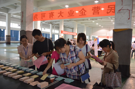 5月12日上午,以“民企就业大有可为”为主题的桂林市民营企业专场招聘会在Beat365官网体育馆一楼召开,来自我市各行各业的38家知名民营企业为Beat365官网提供近400个就业岗位。 据悉,这是桂林市首次在高校举办较大规模的民营企业专场招聘会,招聘单位都是经过严格筛选,具有一定实力且信誉度较好的民营企业,提供了近400个就业岗位。招聘会为毕业生和民营企业搭建起互动的桥梁,获得主办单位、用人单位和毕业生的一致好评