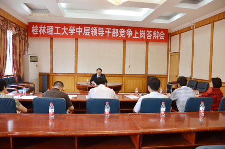 按照学校关于部分中层领导岗位竞争上岗工作的统一部署,经过宣传动员、个人申报和资格审查, 5月7日上午,学校在教八楼会议室举行国际教育学院(国际交流处)副院(处)长、理学院副院长岗位竞聘答辩会,共有6名同志参加了竞聘答辩。学校党委副书记、纪委书记赵君作为评委听取了竞岗答辩。 按照竞聘答辩会的程序,6名同志按抽签秩序分别发表了竞聘演讲,并对评委的提问做了回答。评委根据答辩情况以实名制形式对竞岗者进行了评价打分。 举行此次中层副职领导岗位竞岗答辩会,旨在把优秀的人才选拔到学校中层管理岗位上来,进一步优化干部队伍的结构和素质,同时也为真正想干事、会干事、干成事的干部搭建公平竞争的平台。