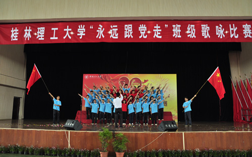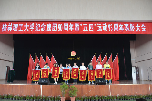 5月6日上午,Beat365官网在雁山校区体育训练馆隆重举行纪念建团90周年暨“五四”运动93周年表彰大会、“永远跟党走”班级歌咏比赛。学校党委副书记王赣华出席表彰会、观看了红歌比赛并作讲话。党委学工部,校团委负责人及各学院副书记、团委书记、辅导员参加表彰会或担任比赛评委。校团委书记辛立章主持表彰大会。 表彰大会在雄壮的国歌声中开幕,校团委白凌婷副书记宣读了《关于表彰2011年度共青团“十佳团支部”、“十佳团支书”、“十佳团员”的决定》,校团委周国桥副书记宣读了《关于公布2012年度“五四红旗团支部标兵”创建单位的通知》,在主席台前排就坐的领导为获奖代表颁奖和授旗。“十佳团员”、 “十佳团支书”、 “十佳团支部”学生代表肖丹、施林劼、陈凤斯三位同学分别作了发言。 王赣华副书记在表彰大会回顾了“五四”运动的光辉历史和“五四”精神的时代内涵,强调全校共青团组织、广大团员干部和团员青年要进一步继承弘扬“五四”精神,按照胡锦涛总书记在纪念中国共产主义青年团成立90周年大会上的重要讲话要求,坚持远大理想、坚持刻苦学习、坚持艰苦奋斗、坚持开拓创新、坚持高尚品行、担负起时代赋予的光荣使命。同时,王副书记向全校广大青年学生、共青团干部和共青团组织提出了几点希望:一是希望广大青年学生继承弘扬“五四”精神,坚定永远跟党走的信念,努力成为对社会有用之才;二是希望广大团员干部要切实加强自身建设,增强素质,提升服务能力和水平;三是希望学校共青团组织要求真务实,勇于创新,切实履行好团组织的职能。王副书记指出,青年是国家的未来,是民族的希望,是最富朝气、最富创造性、最富生命力的群体,希望他们能志存高远,脚踏实地,矢志奋斗,不懈进取,为为学校的建设和发展,为伟大祖国、伟大民族更加美好的明天而努力奋斗! 表彰会后,举行了“永远跟党走”班级歌咏比赛,王副书记在开幕式上充分肯定了比赛对校园文化建设的促进作用并预祝活动圆满成功。以“红歌传唱九十年,五四精神代代传” 为主题的歌咏比赛吸引了各学院的积极参与,参赛班级都拿出了自己的看家本领,在比赛唱功的同时,更别出心裁地添加了不少创意,有的以舞伴歌,有的加入了不少手语、手势,有的更是打出不少别有创意的对联和横幅,为比赛增色不少,演出质量也较往年有较大提高。 经过激烈的角逐,艺术学院艺术11-9班荣获一等奖,应用技术学院和理学院获得二等奖,信息科学与工程学院、土木与建筑工程学院 、管理学院分获三等奖,其它学院获得优秀奖。比赛展现了当代大学生的精神风貌,丰富了校园文化生活,更表达了对中国共产主义青年团成立90周年和“五四”运动93周年的深情祝福。