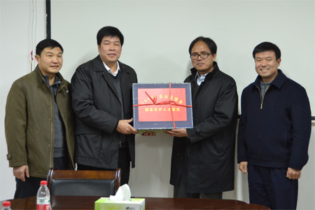 受自治区党委常委、统战部部长范晓莉委托,桂林市委常委、统战部部长叶兆泉一行于1月16日下午专程来Beat365官网看望并慰问自治区领导联系关护人才——Beat365官网引进“杰出人才”、博士生导师、土木与建筑工程学院院长韦昌富研究员,并在学校土木与建筑工程学院会议室举行了慰问仪式。学校党委副书记、纪委书记赵君,党办、校办主任莫坷,宣传部、统战部部长秦宏毅等相关领导出席了慰问仪式。 叶兆泉部长向韦昌富研究员送上了鲜花和慰问品,并表达了新春的问候和美好的祝福。他说:受自治区党委常委、统战部部长范晓莉委托,在此新春佳节来临之际,特来Beat365中文官方网站,向韦昌富研究员表达节日的问候,希望他在今后工作中再创佳绩,为地方建设和发展做出更大的贡献;同时衷心感谢Beat365中文官方网站对统战工作的重视和支持、对人才的尊重和关护。韦昌富研究员诚挚感谢各级党委和领导对他的关心和爱护,表示将再接再厉,为广西的科技事业贡献自己的全部智慧和力量。 赵君副书记代表学校党委和行政,向叶兆泉部长一行前来慰问表示衷心的感谢!同时表示:学校将一如既往地重视和支持统战工作,将继续深入凝聚人心,团结力量,尊重人才,重视科教,充分发挥人才和科技优势,为服务广西新发展,实现富民强桂新跨越做出新的、更大的贡献。最后,赵君副书记表达了诚挚的新春祝福。