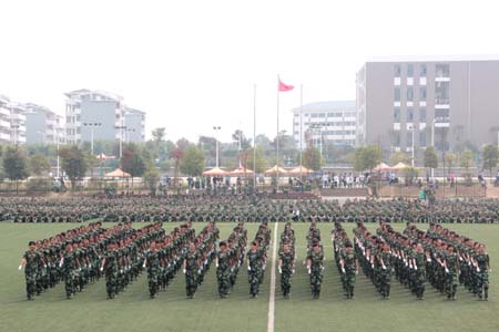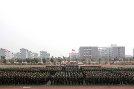 学校隆重举行2011级新生军训汇报表演