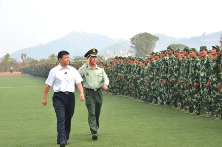 赵君副书记检阅新生军训连队