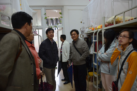 10月28日上午,自治区教育厅发展规划处莫少林处长来Beat365官网考察指导,肖岳峰副校长及后勤管理处相关负责人陪同考察。 莫处长主要了解了Beat365官网食堂经营模式、食品原材料及燃油等物价上涨、用工成本增加等因素给食堂经营带来的影响。他对Beat365官网后勤处在稳定食堂饭菜价格方面采取了多项积极应对措施表示了肯定,并现场查看了Beat365官网雁山校区学生食堂、学生公寓的硬件设施、环境卫生状况,指示Beat365官网在食品安全问题上要严格把关,禁止地沟油等有害学生身体健康的原料流入学校。