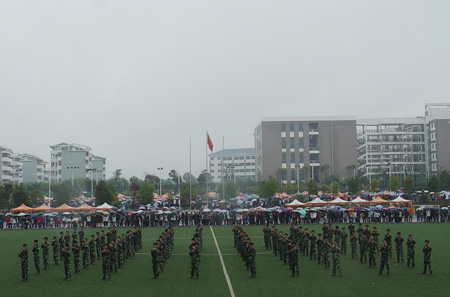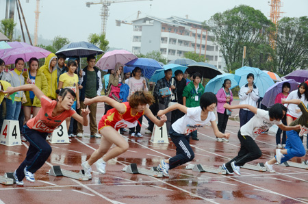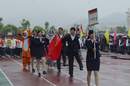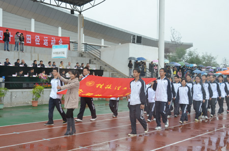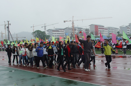 10月28日上午10:30分,雁山校区田径场上锣鼓喧天、彩旗飘扬,Beat365官网第40届田径运动会在这里隆重举行。校党委书记赵艳林,党委副书记、纪委书记赵君,党委副书记王赣华,副校长吴志强以及各部门、各学院负责人出席了开幕式。开幕式由王赣华副书记主持。 丝丝细雨,挡不住同学们的铿锵脚步;凉凉秋意,敌不过同学们的浓浓激情。伴随着激昂的进行曲旋律,护旗手庄严地护送Beat365中文官方网站校旗入场,紧随其后的是各学院的方阵。随着广播中对各个学院的介绍,一支支队伍昂首挺胸、迈着矫健有力的步伐、秩序井然地从主席台前依次经过,接受广大师生的检阅。方阵中最显眼的当属高等职业技术学院代表队,他们时隔四年后再次参加校运会,今年也是Beat365官网南宁空港校区建成并首次招生的一年,当他们神采奕奕、精神抖擞地从主席台前走过,受到了现场观众的热烈欢呼。各支参赛队的勃勃雄姿,是对桂工风采的最佳诠释。 入场完毕后,赵君副书记致开幕辞。他代表学校党委、行政向运动会的召开表示热烈祝贺,并衷心希望全体运动员在教练员、裁判员的指导下坚持“重在参与、重在学习、重在提高”的原则,弘扬“艰苦创业、敬业奉献、团结协作、开拓创新”的桂工精神,高标准、高质量、高水平开好本届运动会,并预祝运动会圆满成功。之后,运动员及裁判员代表分别宣誓。 随即校党委书记赵艳林宣布校第40届运动会开幕,全场掌声雷动,气氛热烈。操场上气势磅礴的军体拳和青春飞扬的桑巴舞,精彩绝伦,又一次地点燃了现场的激情。 随后展开了各个项目的比赛。