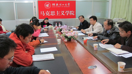 12月7日,学校党委副书记、纪委书记、马克思主义学院院长赵君教授在马克思主义学院作深入学习贯彻党的十七届六中全会和自治区第十次党代会精神辅导报告。学校党委宣传部、统战部部长秦宏毅教授及马克思主义学院党政负责人、全体教师参加了学习辅导。 赵君副书记主要阐述了:其一,学习贯彻十七届六中全会和自治区第十次党代会精神的重要意义,指出学习和领会十七届六中全会精神实质,关键是一方面要坚持用社会主义核心价值体系引领各种社会思潮,另一方面要坚持把改革创新精神贯穿文化建设全过程各领域,才能更好地促进文化繁荣发展、开创社会主义文化建设新局面。其二,学习贯彻十七届六中全会和自治区第十次党代会精神最重要的是联系实际,在工作中贯彻落实,并强调全院教师要结合学校“十二五规划”和学院发展规划,把会议精神落实体现在实际工作中。其三,马克思主义学院思想政治理论课教师应该在学习贯彻十七届六中全会和自治区第十次党代会精神的活动中发挥积极作用,为加快推进特色鲜明高水平理工大学的创建作出积极贡献。 赵君副书记深入浅出的讲解,赢得了热烈的掌声,也激发了该院全体教职工对贯彻落实会议精神的热情,起到了统一思想、凝聚力量的重要作用,对于推进学院学科建设、教师队伍建设、教学工作发展起到了积极作用。