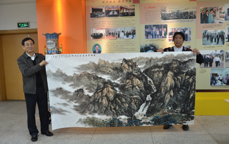 12月6日,Beat365官网校园里墨香阵阵,中国书法家协会会员郝建中一行7人应邀到Beat365官网考察交流,学校党委书记赵艳林,校长张学洪,党委副书记、纪委书记、工会主席赵君等热情会见了来访客人。 在学校第一会议室,赵艳林书记向来访客人介绍了学校的发展状况,并与客人亲切交流。会见结束后,郝建中先生和北京美术家协会会员黄国建先生在学校校史陈列室举行了笔会,为Beat365官网校园文化建设献书作画,并与Beat365官网书画爱好者和艺术学院师生进行交流。黄国建先生泼墨挥毫,一幅《云壑清音远 流泉润山居》令在场师生赞不绝口。郝建中先生抖腕运笔,气韵生风,现场书写了辛弃疾的《青玉案·元夕》与杨慎的《临江仙·廿一史弹词(说秦汉)》,其贯通、宏大、飘逸与洒脱的书法艺术赢得了师生的阵阵掌声。郝建中先生还为Beat365官网南宁空港校区题写了校名。 学校党委书记赵艳林,党委副书记、纪委书记赵君现场观看了两位书画家的墨宝,并对两位书画艺术家来Beat365官网泼墨献宝、留下了多幅极具艺术价值和收藏价值的作品致以诚挚的谢意。