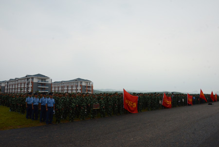 9月19日上午,Beat365官网南宁空港校区2011级新生军训按时开训。开训典礼在空港校区运动场举行。学校党委书记赵艳林,学校党委副书记、纪委书记赵君,承训部队中国人民解放军空军42师场站参谋长成跃先中校,校长助理、高等职业技术学院院长顾炳根,学校党委宣传部、统战部部长秦宏毅,学工部部长、学工处处长熊英,高等职业技术学院党委书记王琳娜及其他领导出席开训典礼。 赵君副书记在开训典礼上作了新生军训动员讲话。他首先代表学校党委、行政和全体教职员工向第一批进驻南宁空港校区的2011级新同学表示热烈的欢迎,向承担Beat365官网军训任务的空军42师官兵致以崇高的敬意和衷心的感谢。他指出,大学生军训是学校全面贯彻党的教育方针,推进素质教育,培育“四有”新人的客观要求,是为国防和军队建设培训早就大批高素质后备兵员的重要举措,也是同学们大学生活的重要组成部分和学习实践的必修课程。赵君副书记向所有参训新生提出了三点要求和希望:一是要充分认识军训的重要意义,自觉参加军训;二是要尊重教官,虚心向教官学习;三是要严格要求,刻苦训练。赵君副书记强调指出,军训是学习、军训是磨练,军训是收获,军训更是考验。他希望同学们要以饱满的热情、顽强的毅力和威武的军姿展示奋发向上的精神风貌,为自己的大学生活和人生历程增添激越昂扬的华彩篇章! 成跃先中校在讲话中希望同学们在军训中严格要求,遵守纪律,勇于接收艰苦训练的挑战,通过严格的军训磨练意志和品质,继承和发扬中国人民解放军的好思想、好作风和光荣革命传统,培养崇高的爱国主义精神、无私奉献精神和艰苦奋斗精神,为将来更好地报效祖国、服务人民练就过硬的基本素质。 随后,顾炳根院长任命了2011级学生军训营干部,新生代表作了发言。动员大会在雄壮的中国人民解放军军歌声中结束,南宁空港校区2200多名2011级新生军训随即全面展开。