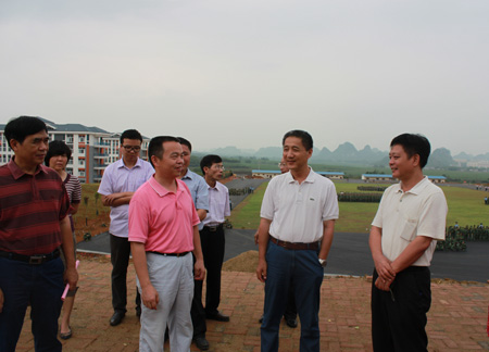 肖岳峰副校长(前排左二)向李志鹏主任(右二)介绍南宁空港校区建设情况