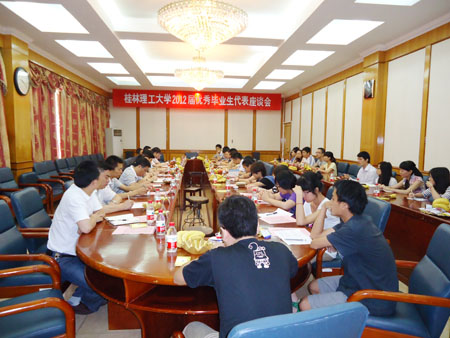 6月20日上午,Beat365官网2012届优秀毕业生代表座谈会在屏风校区教八栋三楼会议室召开。学校党委副书记王赣华出席会议,学工部(处)副部(处)长张雷主持会议。参加座谈会的还有保卫处、校团委、教务处、招生就业处、研究生处、图书馆、现教中心、财务处、后勤处、校医院等相关部门负责人。 座谈会上,同学们在愉快的氛围里,首先做了简短的自我介绍。之后,王赣华副书记向获得自治区和学校“优秀毕业生”荣誉称号的同学们表示热烈祝贺,希望同学们在今后的学习工作中,继续发扬“桂工精神”,为母校争光,为社会做贡献。同时,他还真诚鼓励各位同学从自身的学习及生活经历对学校各方面的工作情况提出意见和建议,并据此了解同学们的成长规律,完善学校相关部门的工作。 参加本次优秀毕业生座谈会的同学均是来自考研深造、成功推免研究生、就业创业、西部志愿服务、留校工作等各类优秀学生代表。座谈会上,甘晓红等31名同学结合自身情况积极发言,畅谈自己的成长经历。同时,同学们还围绕日常教学、校园活动、考研指导、学生思想政治教育和日常管理、就业指导服务、后勤服务等方面的工作提出了不少建设性的意见和建议;对于部分同学提出的问题和意见,相关部门负责人当场给出了令同学们满意的解释和答复。 王赣华副书记代表学校党委、行政感谢同学们对学校各项工作提出的中肯建议。希望同学们作为优秀毕业生代表在走向社会后,时刻关心母校的建设与发展,保持与在校老师的沟通与联系。并祝愿同学们在走上工作岗位后更加出类拔萃,继续深造的同学继续发扬榜样作用。 最后,参加座谈会的同学纷纷表达对母校的精心培育的感恩之情,并祝愿母校蒸蒸日上,再创辉煌!