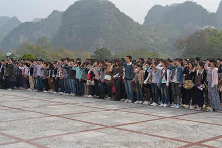 培训班学员在红军突破湘江纪念碑前合影