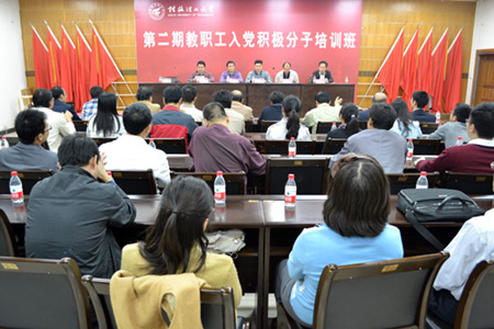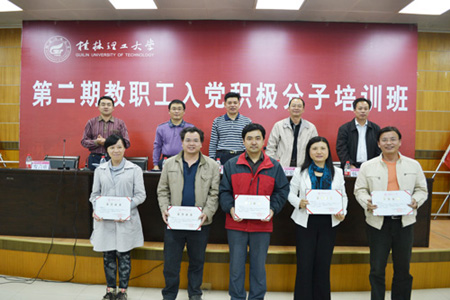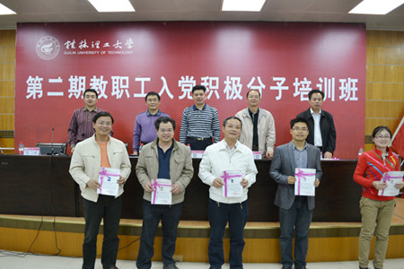 11月15日晚,学校第二期教职工入党积极分子培训班结业典礼在党校教室召开。党校校务委员、党委办公室主任、校长办公室主任莫坷,党校校务委员、党委宣传部部长、党委统战部部长秦宏毅,党校校务委员、学校团委书记辛立章,本期培训班班主任、测绘学院党委书记伍飞军,以及各二级党组织书记、副书记出席了结业典礼。结业典礼由党校校务委员、党委组织部副部长白永生同志主持。 为认真贯彻落实党的十七届四中全会关于加强和改进新形势下党的建设的战略部署和学校第一次党代会以及党建工作会议精神,学校于10月26日至11月15日举办了第二期教职工入党积极分子培训班。本期培训班共有学员21名,其中教授2人,副教授或相当于副教授职称的5人,硕士学位以上有13人(其中有博士学位2人),占参加本次培训班学员56%,处级领导干部2人,具有较高学历、职称层次。培训采取集中授课、座谈讨论、课下自学、参观考察相结合的方式进行,其中专题授课5次、分组讨论1次,并开展了赴兴安红军长征突破湘江烈士纪念碑园的参观考察活动。经过党校严格审核,最终21名学员顺利结业。 结业典礼上,党校校务委员、党委宣传部秦宏毅部长宣读了《关于表彰Beat365中文官方网站第二期教职工入党积极分子培训班“优秀学员”的决定》,授予沈卓君、毛金凤、王向伟、易忠胜、唐州圆等5名同志Beat365中文官方网站第二期教职工入党积极分子培训班“优秀学员”荣誉称号。在主席台就坐的领导为优秀学员颁发了荣誉证书,并向学员代表颁发了结业证书。优秀学员代表毛金凤老师结合自身工作实际以及参加此次入党积极分子培训班的学习体会和成果,作了激情洋溢的交流发言。她在发言中表示,一定会继续加强党性修养,让优秀成为习惯;立足岗位工作,争做模范带头人;加强民族使命感,用自己的实际行动向党组织靠拢,争取早日加入中国共产党。 莫坷主任在总结讲话中充分肯定了学员们的收获,他指出本次培训班领导高度重视,学员结构广泛,重点突出,针对性强,学员参与积极,培训效果良好。他还对学员们提出三点希望和要求:一是希望学员们继续努力学习党的知识,进一步激发入党的自觉性和积极性;二是要坚持理论联系实际,在本单位、本部门的教学、科研、管理、服务等各项工作中发挥先锋模范作用;三是学习结束后,要将参加这次培训班的情况向党支部汇报,具有副高以上职称和副处以上职务的同志还要向二级党委汇报,以便所在党组织及时掌握大家参加学习的情况。 最后,结业典礼在庄严的《国际歌》歌声中结束。