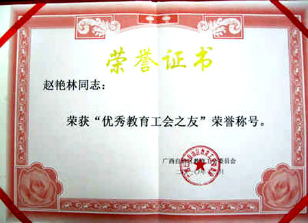 近日,自治区教育工会下发了《关于表彰全区先进教职工之家、先进教职工小家、全区优秀教育工会工作者、优秀教育工会之友的决定》(桂教工字[2010]30号)文件,学校党委书记赵艳林同志获“优秀教育工会之友”荣誉称号。 “优秀教育工会之友”旨在表彰大力支持和帮助工会工作,并在全区教育工会系统开展 “建家活动”中取得突出成绩的单位领导。 本次表彰中,赵艳林书记是桂林高校中唯一获此殊荣的先进个人。 一直以来,学校党委、行政非常关心工会工作,从人力、物力、财力上对工会工作给予大力支持和帮助。赵艳林书记高度重视工会工作,对工会工作寄予了厚望,多次对工会建设提出了重要指示,鼓励和支持工会大胆开展工作,紧紧围绕学校中心任务,不断推进工会工作上台阶上水平,并积极以普通会员的身份参加工会各项活动,极大地鼓舞了工会干部的工作热情。赵艳林书记的支持和关怀为工会工作取得优异成绩提供了坚强的后盾和有力的保障。 近年来,工会在学校党委的正确领导和关心帮助下,在学校行政的大力支持下取得了显著的成绩。2010年度获自治区教育工会、桂林市总工会《先进教职工之家》、《先进职工之家》、《工会工作目标考核优秀单位》等一系列荣誉称号。