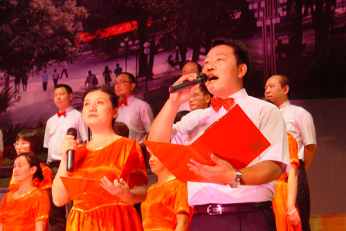 校领导积极带头参加红歌比赛