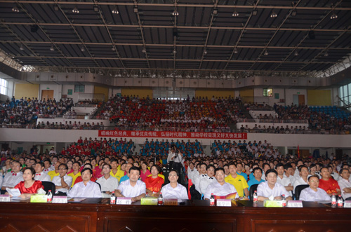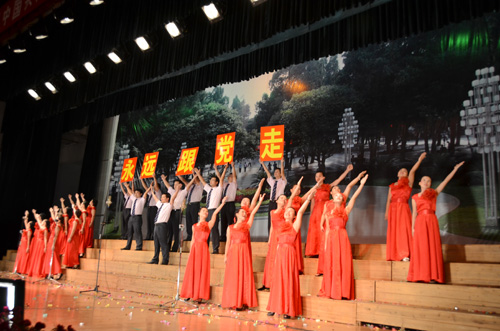 为庆祝中国共产党成立90周年,积极营造“唱红歌、颂党情”的良好氛围,由学校党委主办,党委宣传部、校工会承办的教职工红歌合唱比赛于6月29日晚在屏风校区体育馆三楼隆重举行,由学校各分会组成的二十一个合唱队参加了比赛,他们用饱满的热情、嘹亮的歌声,为党90岁生日献上了最美好的祝福。 校党委书记赵艳林,校长张学洪,党委副书记、纪委书记赵君,党委副书记王赣华,副校长陈学军,党委委员、校长助理、人事处处长华桂林,党委委员、组织部部长陈贵英等参加并观看了比赛。 晚上7时零1分,在全体与会人员的倒计时声中,比赛正式召开。 赵君副书记代表学校学校党委、行政对此次活动表示热烈祝贺!向一直以来关心、支持和参与学校建设发展的全校师生员工和离退休老同志表示衷心感谢!向全校共产党员道一声节日快乐!他在致词中说:中国共产党成立90年来的历史反复证明,没有共产党,就没有新中国的独立和富强;没有共产党,就没有人民的自由和幸福;没有共产党,就没有中国的社会主义现代化!历史无可雄辩地证明着:中国共产党是伟大的、光荣的、正确的党!在中国共产党领导全国人民建设发展的历程中,学校坚持党的正确领导,坚持社会主义办学方向,抢抓机遇,攻坚克难,实现了科学发展、和谐发展、跨越发展,学校各方面工作取得了喜人的成绩。 随后,各分会合唱队以一首首耳熟能详的经典红歌,歌唱心中的红色记忆,抒发对党和祖国的深情祝福,唱出了全体桂工人在学校党委的坚强领导下建设特色鲜明的高水平理工大学的决心与信心。比赛现场气氛热烈,台上教职工精神饱满、气势激昂,台下掌声如潮,其乐融融,呈现出欢乐祥和的气氛,此起彼伏的掌声欢呼声将歌咏比赛一次次推向高潮。 经过评委们客观、公正的评判,机关二分会、联合分会、体育教学部分会组成的合唱队和艺术学院分会合唱队荣获本次歌咏比赛的一等奖;机关一分会、外国语学院、土木与建筑工程学院分会合唱队获二等奖;材料科学与工程学院、化学与生物工程学院分会组成的合唱队,人文社会科学学院、马克思主义学院分会组成的合唱队,附属小学,博文管理学院,离退处等分会合唱队获三等奖,校领导给各获奖代表一一颁奖并合影留念。 本次比赛,大家以唱红歌为契机,把对党的无比热爱,对祖国的无限忠诚和对事业的不懈追求,融入美妙的歌声中。用歌声抒发他们的爱国之情、爱党之情和爱校之情,用红歌主旋律,营造Beat365中文官方网站健康、向上、团结、奋进的良好氛围,激发全体桂工人的昂仰斗志,为建设特色鲜明的高水平理工大学而不断奋斗!
