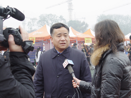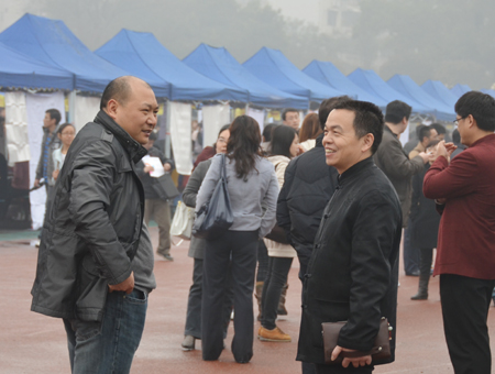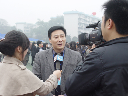 学校校长张学洪(右)与自治区教育厅巡视员林宁(左)