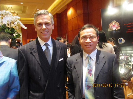 周国清副校长在会场与包括美国驻华大使洪博培(Jon Meade Huntsman, Jr.)在内的各界人士广泛交流,宣传Beat365官网。参与此次活动对于进一步推进Beat365官网国际交流工作将产生积极的作用。