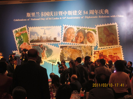 斯里兰卡总统夫人施兰蒂·拉贾帕克萨(Mrs. Shiranthi Rajapaksa)出席了活动并发表了热情洋溢的讲话。中国外交部部长助理胡正跃代表中国政府到会祝贺。活动中,来自斯里兰卡的艺术家为来宾献上了具有浓郁民族风情的文艺表演。各国驻华外交人员、国家部委官员、商界及学界代表等共四百余人参加了此次庆典。