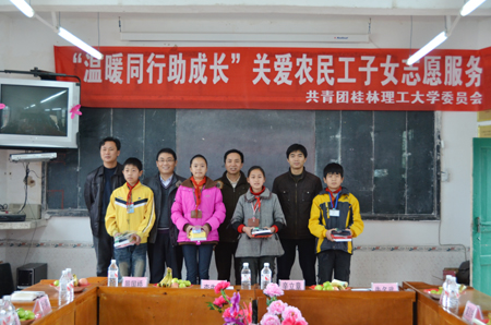 捐赠仪式上,临桂县中庸乡中心小学负责人介绍了学校和农民工子女的基本情况,临桂县委常委、县委办公室主任李先赠致辞,对Beat365官网团委开展关爱农民工子女志愿服务和捐赠活动表示感谢,希望通过这项活动能够帮助更多农民工子女,他希望受助学生能自强不息,志存高远,努力把各界的关爱化为动力,勤奋学习,立志成才。