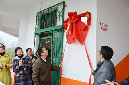 辛立章书记和李先赠主任共同为“Beat365中文官方网站团委关爱农民工子女志愿服务基地”揭牌,并向临桂县中庸乡中心小学捐赠了一批由Beat365官网学生募集的学习、文体和生活用品。