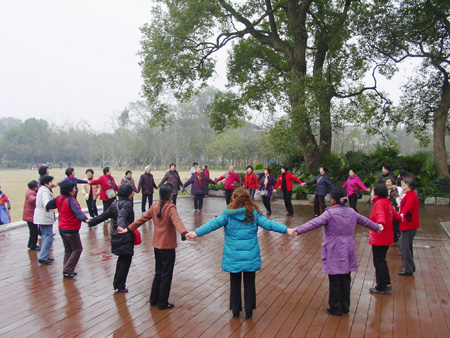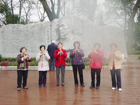 “丢,丢,丢手绢,轻轻地放在小朋友的后面,大家不要告诉她,快点快点捉住她……”,一场儿童游戏《丢手绢》将老同志带回到快乐的童年;《伞舞》散发了离退休女同胞美丽的风采;一曲优雅的葫芦丝乐曲飘荡在訾洲公园的上空。 “三八”国际劳动妇女节离退休女同胞在訾洲公园隆重聚会,增加了老同志之间友谊与联系,促进了老同志们的身心健康,激活了老同志们的青春激情。