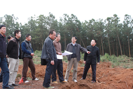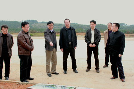 考察结束后,学校党委书记赵艳林、副校长肖岳峰亲临扶绥校区各建设项目现场指导工作。赵艳林书记在实地调研后对建设指挥部的前期工作给予了充分肯定,并对扶绥校区的建设提出了三点要求:一是指挥部全体成员要克服困难、团结协作、真抓实干,全力以赴确保一期工程建设项目优质高效完工;二是指挥部工作要立足眼前、长远规划,尽快完成施工方进场前的各项前期工作,做好现场施工的准备工作;三是在校区建设过程中要充分利用校区现有的生态环境,做好景观和园林规划,着力将校区建设成为景色优美、环境优雅的“花园”式校区。赵艳林书记、肖岳峰副校长还就临扶绥校区道路建设等项目作出了具体指导。