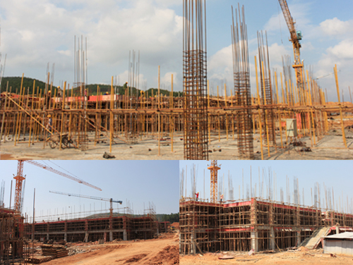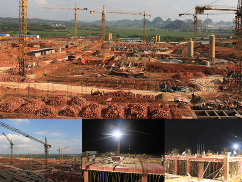 学校南宁分校扶绥校区一期工程建设项目自今年3月正式开工建设以来,得到了上级领导的高度重视和亲切关怀,自治区党委书记、自治区人大常委会主任郭声琨,自治区党委常委、统战部部长黄道伟,自治区人民政府副主席杨道喜,自治区国资委党委书记尹建国,崇左市委书记赵乐秦,自治区教育厅副厅长杨伟嘉等领导先后亲临施工现场视察指导。郭声琨书记在施工现场视察并听取汇报后,充分肯定了Beat365官网选址扶绥建设新校区的意义,对新校区的建设作出了重要指示,上级领导的悉心关怀为扶绥校区的建设注入了新的动力。工程建设期间,学校党委书记赵艳林、校长张学洪等校领导多次到施工现场检查、指导和督促各建设项目的进展情况,校领导的关心和指导为扶绥校区的建设提供了有力的保证。扶绥县委县政府更是大力支持和配合新校区的建设工作,崇左市委常委、扶绥县委书记白松涛、县长吴强等领导多次前往施工现场调研,就建设中存在需要协调解决的问题专门召开现场办公会,要求相关部门限期解决,为扶绥校区的建设提供了大力支持。 在各级领导的悉心指导和当地政府的大力支持下,扶绥校区建设指挥部全体成员团结协作、真抓实干,组织各承建单位昼夜施工、狠抓工期,全力以赴确保一期工程建设项目优质高效完工。截止目前,扶绥校区一期工程各建设项目已完成基础施工,多数建筑已完成一层墙体的砌筑和一层顶板混凝土的浇筑,部分教学楼已完成二层顶板混凝土的浇筑。