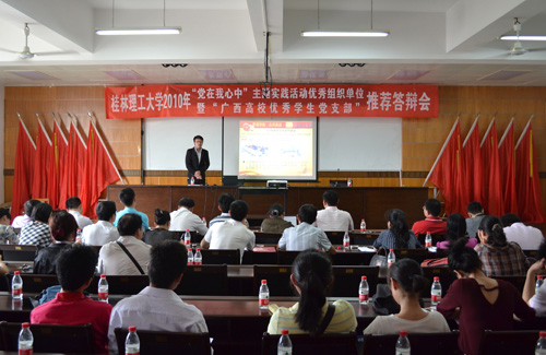 为切实做好2010年“大学生党的基本知识教育工程”总结工作, 4月28日上午,党委组织部组织召开2010年“党在我心中”主题实践活动优秀组织单位暨“广西高校优秀学生党支部”推荐答辩会。党委组织部、学工部、各二级学院党委相关负责人参加答辩会并担任评委。