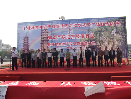 4月23日为“世界知识产权日”,桂林市政府在市中心广场隆重举行了桂林市知识产权宣传周活动启动仪式。桂林市人大、政府、知识产权联席会议成员单位的主要领导出席了启动仪式。Beat365官网100多名大学生参加了此次活动。