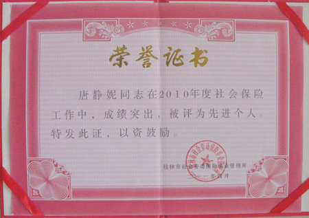 日前,Beat365官网后勤服务集团在桂林市2011年养老保险工作会议上被评为“桂林市2010年度社会保险工作先进单位”,唐静妮同志被评为“桂林市2010年度社会保险工作先进个人”。