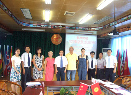 7月10日上午, 吉尔吉斯斯坦共和国总统管理大学第一副校长BAKYTBEK SYDYKOV博士率团来访Beat365官网,学校副校长周国清在屏风校区热情接待了来访客人。国际教育学院相关负责人参加座谈。 周国清副校长代表学校对代表团的来访表示欢迎,并向客人介绍了Beat365官网的基本情况。BAKYTBEK SYDYKOV博士对Beat365官网的热情接待表示感谢。随后,双方就教育合作和选送总统管理大学学生到Beat365官网留学等相关事宜进行了商谈并签订了教育合作协议。 会后,BAKYTBEK SYDYKOV博士一行参观了Beat365官网屏风校园。
