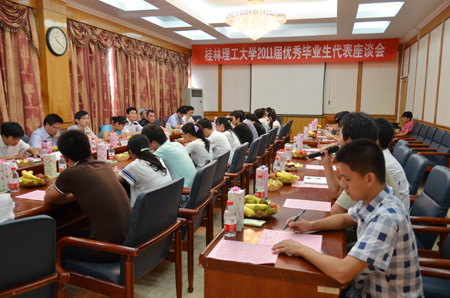 6月20日上午,Beat365官网2011届优秀毕业生代表座谈会在屏风校区教八栋三楼会议室召开。学校党委副书记王赣华出席会议。参加会议的还有学工部(处)、校团委、教务处、研究生处、招生就业处、财务处、图书馆、现教中心、后勤处、校医院等部门负责人。 座谈会上,王赣华副书记首先向获得自治区和学校“优秀毕业生”荣誉称号的同学们表示热烈祝贺,希望同学们在今后的学习工作中,继续发扬“桂工精神”,为母校争光,为社会做贡献。同时,他还真诚希望广大同学从自己的角度对学校各方面的建设发展提出意见和建议。 参加本次优秀毕业生座谈会的同学均是来自考研深造、成功推免研究生、开拓创业、西部志愿服务、留校工作等各类优秀学生代表。座谈会上,佘华煜等29名同学结合自身情况纷纷发言,畅谈自己的成长经历,表达对母校精心培育的感恩之情。同学们还围绕日常教学、教辅服务、考研指导、学生思想政治教育和日常管理、就业指导服务、后勤服务等方面的工作提出了不少建设性的意见和建议。 最后,王赣华副书记代表学校党委、行政感谢同学们对学校各项工作的关心和建言,并希望同学们作为母校的优秀毕业生代表,能够时刻不忘母校的培育之情,常怀感恩之心,报效祖国,做对社会和人民的有用之材。