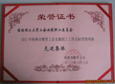 5月30日,桂林市总工会教育工会召开三届五次全会,通报表彰了教育工会系统2011年度先进单位和个人。Beat365官网工会荣获2011年桂林市教育工会工作目标管理考核一等奖、校女教职工委员会荣获2011年桂林市教育工会工作目标管理考核先进集体、外国语学院外语专业教研室荣获桂林市“五一女职工标兵岗”荣誉称号。 近年来,Beat365官网工会、女职工委员会及二级分会认真贯彻落实学校党委和行政的工作部署,在市教育工会的指导下,突出“巩固提高,有所创新,有所发展”的总体目标,紧紧围绕学校中心工作任务,抓重点,攻难点,确保了年初制定的工作目标任务的圆满完成,工会工作和女职工委员会工作均取得了显著成效。各二级分会在学校工会的号召下,努力工作,涌现出了如外国语学院外语专业教研室等先进基层组织,为学校又好又快的发展,辛勤工作,取得了扎实有效的成绩。