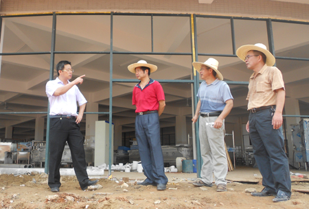 9月5日上午,张学洪校长在陈学军副校长和基建处、校办有关负责人的陪同下,来到雁山校区检查工程建设项目的进展情况。检查中,张校长一行重点实地查看了二号组团学生宿舍和学生食堂等项目工程的进度情况,在听取相关部门的汇报后,张校长对雁山校区建设的各项工作给与了充分肯定,并要求新校区建设指挥部和施工单位要在确保工程质量的前提下加快工期进度,保证在建项目按时投入使用。