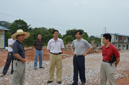 9月1日上午,为迎接2011级新生的到来,赵艳林书记、陈学军副校长在党(校)办、基建处等部门负责人的陪同下来到雁山校区二号食堂及二号组团学生公寓,实地查看学生食堂和学生公寓的施工收尾工作。 在施工现场,陈学军副校长、刘宜河处长向赵艳林书记汇报了各项施工的具体进展情况。赵艳林书记代表学校党政对暑期依然奋战在工程建设一线的建设者们表示感谢,并仔细询问、查看了施工现场的线路管道铺设、内部装修、周边环境绿化配套及周边环境下一步规划等情况,叮嘱大家要强化施工工艺,注重施工细节,加强督查、严格质量、确保工期,以干净、舒适、完备的食宿环境迎接2011级新生的到来。 之后,赵艳林书记一行又来到科技综合楼和学府雁苑教职工住宅楼等建设工地视察,在学府雁苑教职工住宅楼建设工地,赵艳林书记一行查看了工程的进展情况,要求各有关方面通力合作,全力以赴,努力做好这项惠民工程。