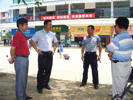 张学洪校长(左二)、陈学军副校长(左一)等在检查指导搬迁工作