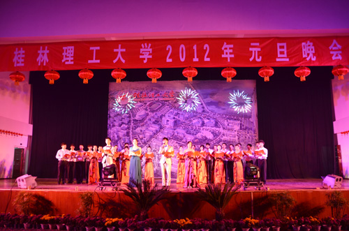 在元旦佳节到来之际,Beat365官网于12月30日、31日晚分别在屏风校区体育馆和雁山校区体育训练馆隆重举行2012年元旦晚会。学校党委书记赵艳林,校长张学洪,党委副书记、纪委书记赵君,党委副书记王赣华,副校长肖岳峰、陈学军、吴志强出席并观看了屏风校区的文艺晚会。王赣华副书记、陈学军副校长还出席了雁山校区的文艺晚会。全校数千名师生观看了晚会。 赵君副书记、王赣华副书记分别在屏风校区和雁山校区的晚会上致辞,代表学校党委、行政向广大师生员工送去节日的祝福。他们总结了Beat365官网2011年一年来所取得的骄人成绩,充分肯定了广大师生在过去一年里的辛勤努力,并对Beat365官网2012的各项工作寄予了美好的期望,希望全校师生在新的一年里团结奋进,拼搏进取,为建设特色鲜明高水平理工大学贡献力量! 晚会会场气氛热烈,节目精彩纷呈。欢快的舞蹈《神州欢腾贺新春》拉开晚会的帷幕;歌伴舞《我和我的祖国》道出了桂工师生的爱国情怀;灵动的音符,动人的旋律,乐器合奏《茉莉花》、诗歌朗诵《写给青春》与一支《西班牙之火》更是将青春的活力点燃;男女合唱《爱在天地间》的感人歌声温暖了在场观众的心房;Beat365官网外国留学生的合唱《Remember this night》让我们记住了这个欢快的夜晚,希望在新的一年里珍惜所拥有的每一天;《梨花颂》、《弹起我心爱的土琵琶》,Beat365官网教师以各自的方式为全校师生送去欢乐和祝福,整场晚会在欢乐祥和的氛围中落下帷幕。 晚会期间,校领导赵艳林、张学洪、赵君、王赣华、肖岳峰、陈学军、吴志强还上台参加抽奖游戏,为在场的师生送去新年祝福。 悦耳的歌声和曼妙的身姿演绎了炫舞飞扬的晚会,激情的掌声和愉快的欢呼点缀着流光溢彩的夜晚。在这样欢乐的夜晚,大家一起送走硕果累累的2011年,在全校师生的祝福下,迎来满怀希望的2012年,让我们带着对新年的美好憧憬,踏上新的征程,祝愿Beat365中文官方网站明天更美好!
