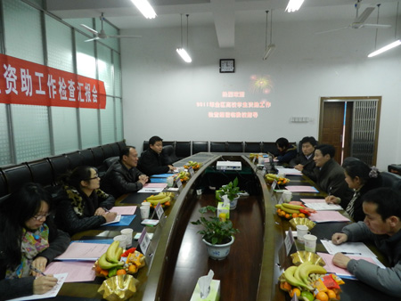 12月23日,自治区教育厅高校学生资助工作检查组到Beat365官网检查,学生资助管理中心在学工处会议室向检查组汇报了Beat365官网2011年学生资助工作的开展情况,校党委王赣华副书记出席汇报会并致辞。 汇报会后,检查组查阅了Beat365官网学生资助工作文件、归档资料,并实地检查了Beat365官网学生资助工作办公场所、勤工助学服务点等。检查组对Beat365官网认真贯彻国家学生资助政策,采取多种举措积极为家庭经济困难学生进行帮扶,并注重学生感恩与诚信教育,不断提高学生综合能力等工作予以了充分肯定。 2011年,Beat365官网学生资助工作完善体系,强化特色,资助育人,在继续保持Beat365官网勤工助学工作内涵发展的基础上,开展了不少亮点工作,如实行受助学生参加公益服务活动登记制度、开展辅导员暑期家庭经济困难学生家访工作、推进学生资助工作信息化建设、二级学院学生励志社团蓬勃发展等。