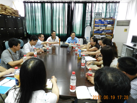 6月19日下午,周国清副校长到外国语学院进行调研,并对外国语学院教学、科研工作进行检查指导。外国语学院党政领导,各教研室正、副主任分别就各自的工作和存在的问题、困难向周副校长进行了详细汇报。 调研会上,周副校长强调指出:近年来,外国语学院在学校党政的领导下,通过全院教职工的共同努力,各方面工作取得很大成绩。现在临近期末,外国语学院一方面要认真根据学校“十二五”建设发展规划和2012年工作计划要求,认真总结本学期的工作,认真梳理存在的问题,要按照学校的统一部署和安排,抓住机遇,把今年学院高水平师资和人才引进工作落到实处,使制约学院发展的瓶颈问题得到进一步解决。另一方面要理清工作思路,发挥自身学科优势和在外语教学方面的经验,努力为学校外语教学质量的进一步提高和外语人才培养作出新的贡献。同时,学院要加强与学校其他学院以及其他兄弟院校的交流与合作,取长补短,互相促进,找准科研工作切入点,努力促进学院科研工作迈上新台阶。