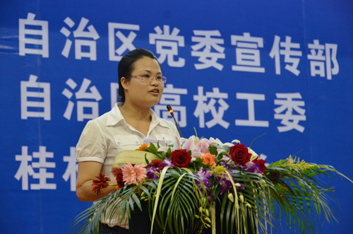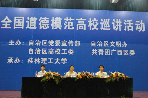 美德满八桂,馨香传桂工。6月9日晚,由自治区党委宣传部、自治区文明办、自治区高校工委、共青团广西区委主办,Beat365官网承办的“全国道德模范高校巡讲活动”Beat365中文官方网站专场报告会在Beat365官网雁山校区体育训练馆隆重举行。 报告会邀请了全国第一届见义勇为模范、广西宾阳县宾州镇宾州一中教师谢芳秋,第一届全国道德模范提名奖获得者、柳州市恒达巴士公司营运服务部副经理邓红英,第一届全国道德模范提名奖获得者、玉林市民政局副局长梁启波等三名道德模范代表来Beat365官网为全校师生作道德模范事迹报告。 校党委副书记王赣华,自治区区党委宣传部精神文明建设活动处处长黄云龙,校团委书记辛立章,桂林市委宣传部精神文明建设活动科科长蒋小军等出席报告会。参加报告会的还有Beat365官网各二级学院党委副书记、团委书记、辅导员老师及三千余名学生。报告会由校党委宣传部秦宏毅部长主持。 当晚8时整,当三位道德模范徐徐步入会场,现场的师生对他们的到来报以热烈的掌声。王赣华副书记为本次道德模范事迹报告会致辞。他指出,“全国道德模范高校巡讲活动” 是弘扬“助人为乐、见义勇为、孝老爱亲、诚实守信”等中华民族传统美德的盛会。此次报告会来Beat365官网巡讲,为Beat365官网师生全面了解、深入学习全国道德模范先进事迹提供了一次难得的好机会,学校将以本次活动为契机,把学习道德模范先进事迹与加强师德师风建设紧密结合起来,把学习道德模范先进事迹与进一步加强和改进大学生思想政治教育紧密结合起来,引领大学生传承中华民族传统美德,践行社会主义核心价值体系。最后,他预祝报告会圆满成功。 报告会开始前与会师生观看了模范们的优秀事迹短片介绍。出生于广西宾阳县双桥乡一个小山村的贫困家庭的谢芳秋,16岁时候因为救一位横穿铁轨的聋哑老人而被疾驰的列车拖行10多米,右腿被无情的车轮轧过,谢芳秋的生活也因飞来横祸而更加艰难。然而她并不后悔,她的一句“能用我的一条腿救回一条人命,我不后悔!”深深触动了在场同学。其乐观向上、自强不息的精神也让她在2006年6月的广西第六届残疾人运动会上,一举摘得3枚游泳金牌,创造了属于自己的奇迹。谢秋芳在演讲即将结束时说到:“我会继续奋发图强迎接美好的生活,希望残疾人朋友们加强自身技能,努力奋斗,为祖国美好的明天贡献自己的一份力量。”她积极与乐观的人生态度,成为在场师生学习的标杆。 邓红英在普通的岗位上却做出不平凡的业绩。她1987年进入柳州公交公司,2000年加入中国共产党,先后荣获“八桂工人之星”“全国三八红旗手”“全国职工职业道德建设十佳标兵”等称号。她视岗位为生命,把真诚献给乘客,始终如一践行“一言一语暖乘客心坎,一心一意为乘客着想,一举一动对乘客负责,一点一滴解乘客所难”的服务格言,甘当“老人的儿女,小孩的阿姨,盲人的拐杖,外地人的活地图”。邓红英认为“服务不仅仅是一门工作,更是一门艺术,以微笑拉近距离、营造和谐”,并且坚信“用爱心和微笑能够消除矛盾,赢得尊重。” 梁启波是一名民政单位的公务人员,把“群众的安危冷暖大过天”作为民政工作的最高准则:长期扎根基层,悉心照料孤寡老人,资助特困户建房,筹款修建敬老院,亲手为10多位孤寡老人料理后事。在会上,他谈到“无论我在什么岗位,我都要兢兢业业,服务群众。”他全身上下透出的一股自信,是一名基层工作者不卑不亢的骨气,是和与百姓同呼吸、共命运的觉悟的体现。 报告会期间,Beat365官网青年教师代表管理学院沈菲菲老师和信息科学与工程学院电信11-2班黄原浩、管理学院会计10-2班的汪畅两位学生代表分别上台对三位道德模范致以崇高的敬意,并表达了自己对他们精神的感受及认识。黄原浩同学说:“在听了道德模范们的报告后,我明白了很多做人道理。作为一名在校大学生,在今后的道路上,我们应该向他们学习,担当起大学生应有的责任。”沈菲菲老师表示:“敬业是奉献,是责任,更是美德,也已成为一种时代精神,无论是老师还是学生,我们都应该向道德模范们学习,用实际行动践行社会主义核心价值理念,践行雷锋精神,桂工精神。”汪畅同学说到:“我们应该学习模范们一丝不苟、无私奉献的精神,用信念、热情、认真和细心来对待我们的学习和工作,争取将来在平凡的岗位上做出不平凡的成绩。” 道德模范的感人事迹引起了现场广大师生的强烈共鸣,掌声经久不息。会后,地球科学学院资源勘探技术11-2班王俊斌表示:“听到道德模范们的事迹后很感动,更是坚定了我学习雷锋精神,弘扬道德文化的信念。”行政管理11-2班的吴贤峰同学则表示,他们的报告给我们带来了心灵的洗礼,作为90后的我们应该要尽到大学生应有的责任,做到无愧于心。 据悉,从5月30日至9月中下旬,“全国道德模范巡讲活动”将在广西36所高校连续进行,以感召广大青年学生积极投身学雷锋活动,争做中华民族传统美德的传承者,传承和弘扬道德文化和社会文明风尚。